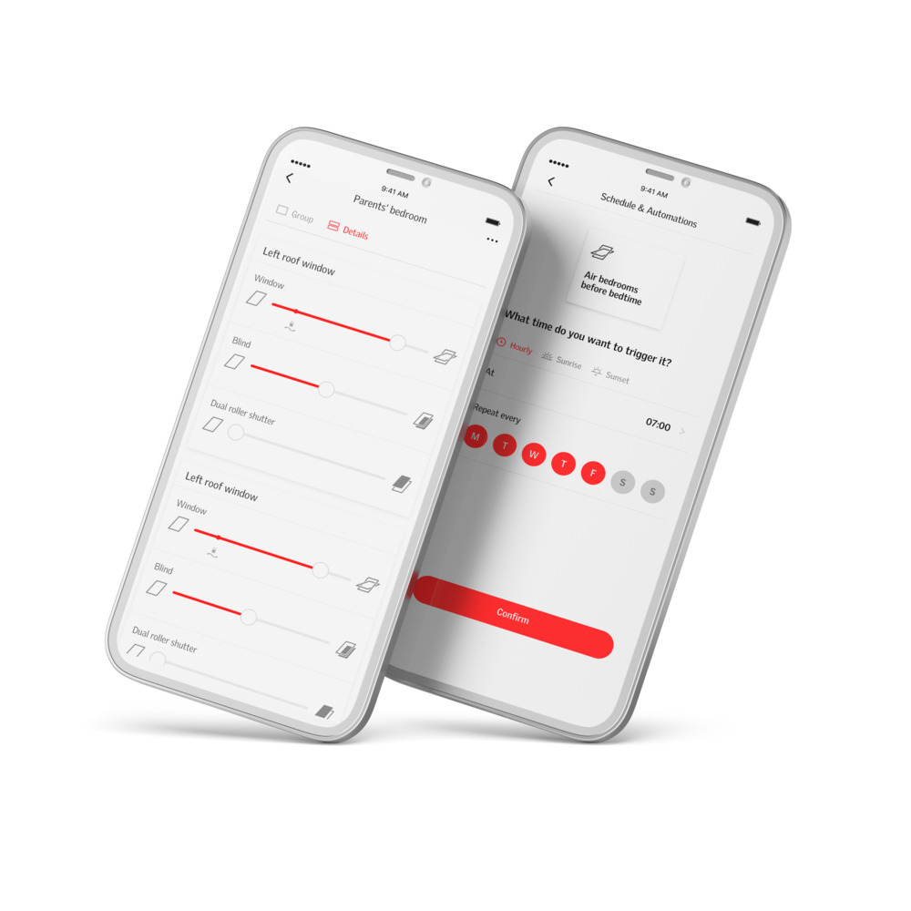 A VELUX App Control segítségével közvetlenül telefonjáról vezérelheti az összes VELUX terméket. Egyetlen pöccintéssel becsukhatja vagy kinyithatja az elektromos és napelemmel működő tetőtéri ablakokat, árnyékolókat és redőnyöket, vagy a még nagyobb kényelemért csoportosíthatja a VELUX termékeket.